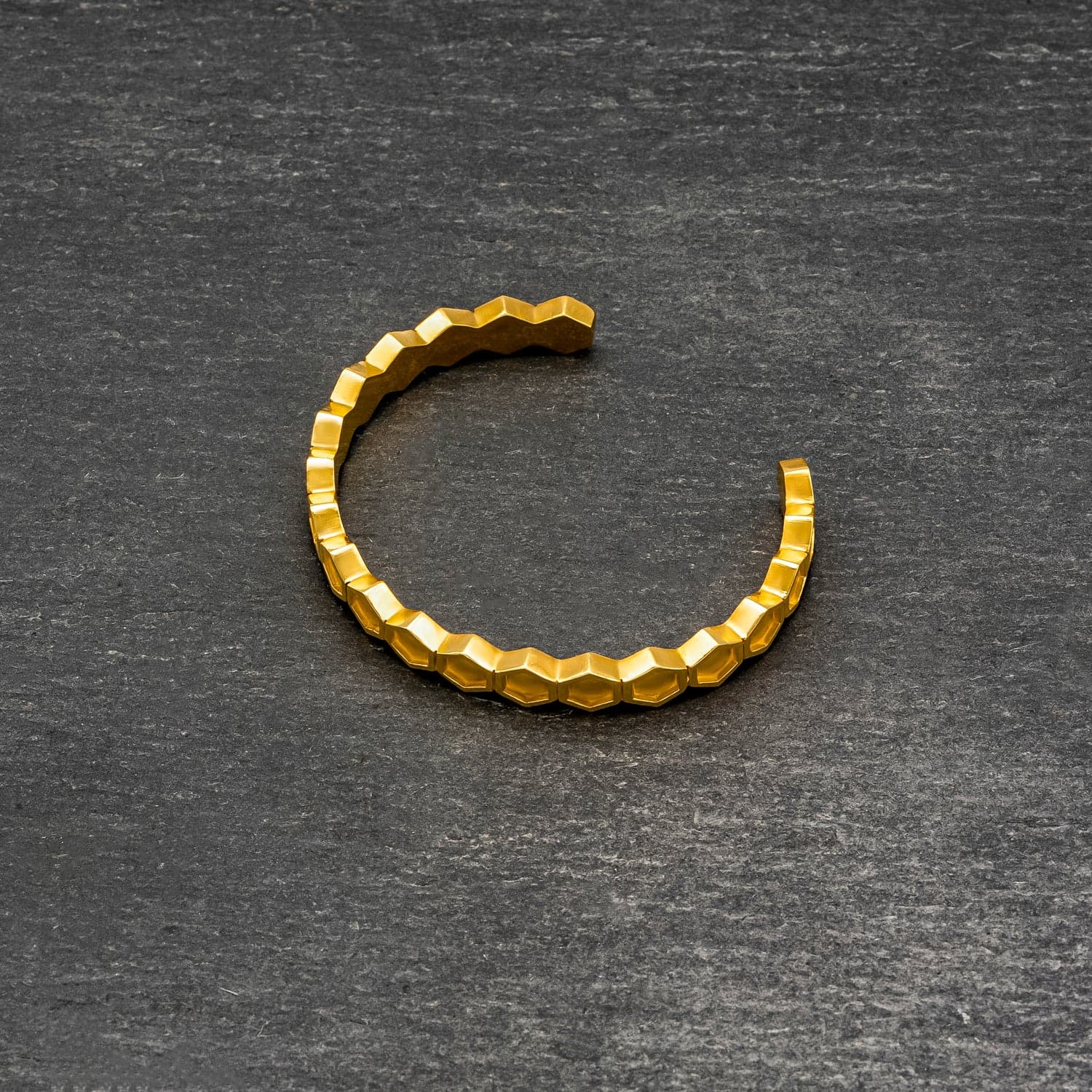 An ancient symbol of prosperity and the antithesis of waste, our Honeycomb cuff encapsulates all the strength and unity of one of natures most efficient creations.
