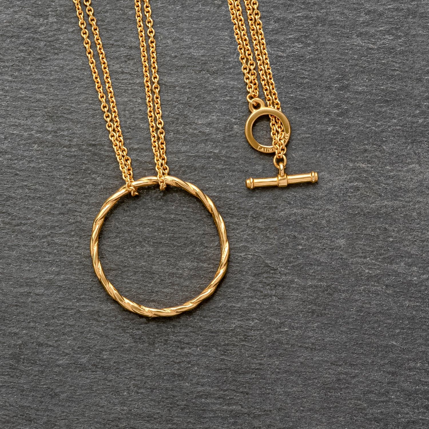 30mm diameter pendant. On 16.5" solid 24k gold delicate double chain with signature solid 24k gold T clasp.
